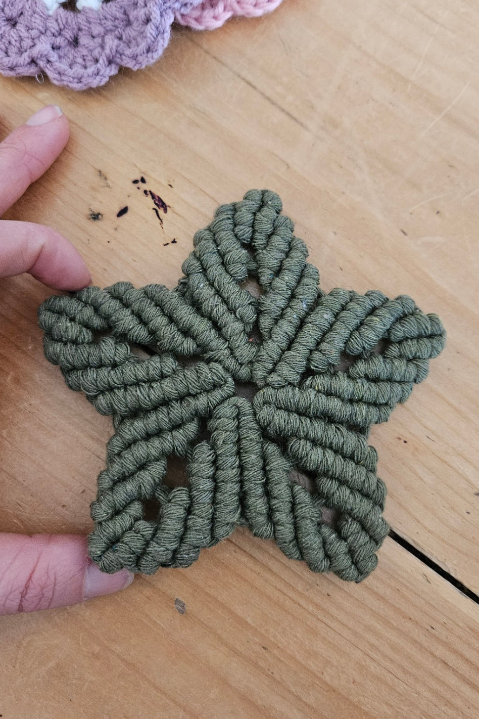 Sous-verre réalisé à la main en macramé. Idéal pour protéger vos surfaces de façon élégante pour vos boissons chaudes ou froide.
