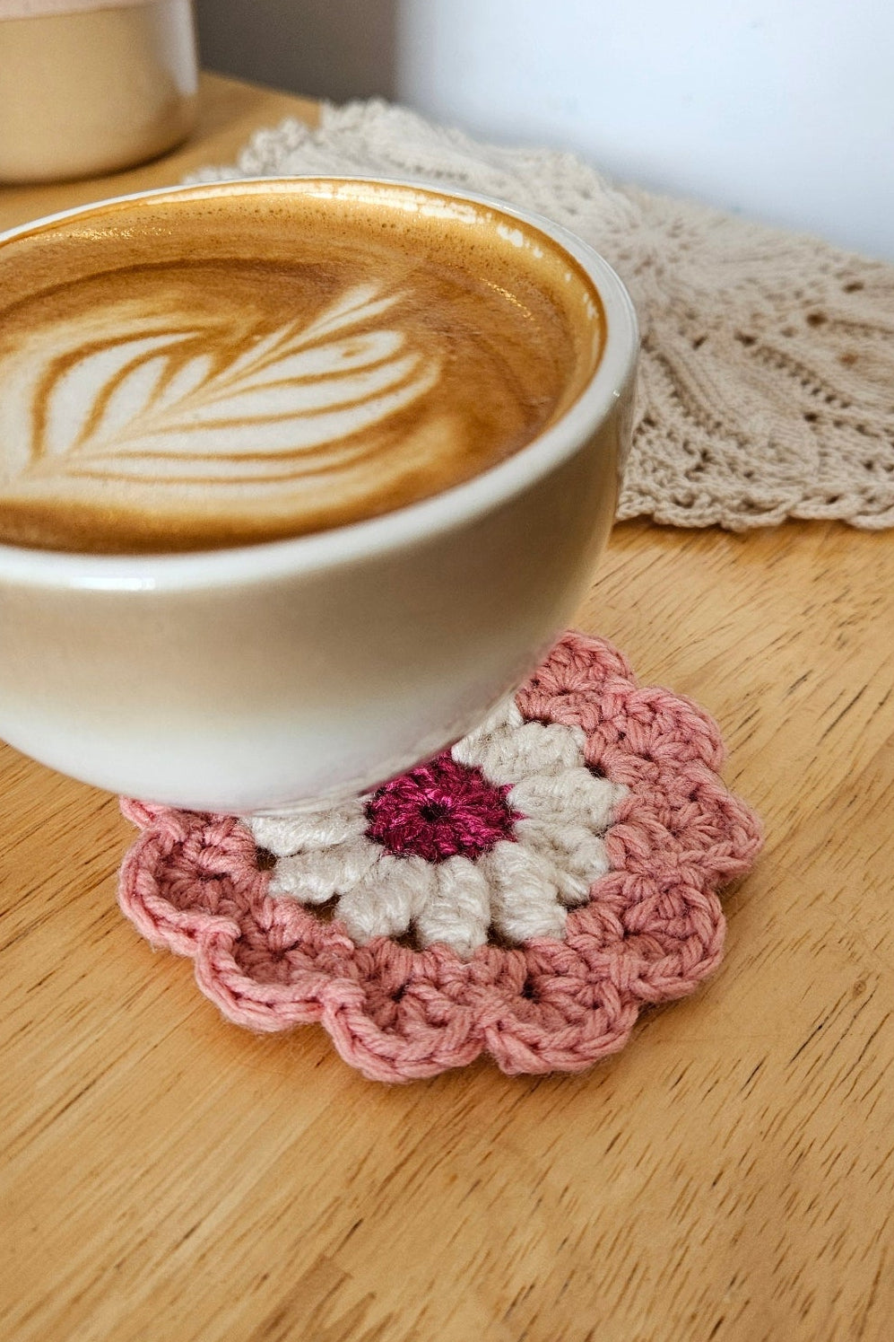 Sous-verre réalisé à la main au crochet. Idéal pour protéger vos surfaces de façon élégante pour vos boissons chaudes ou froide.