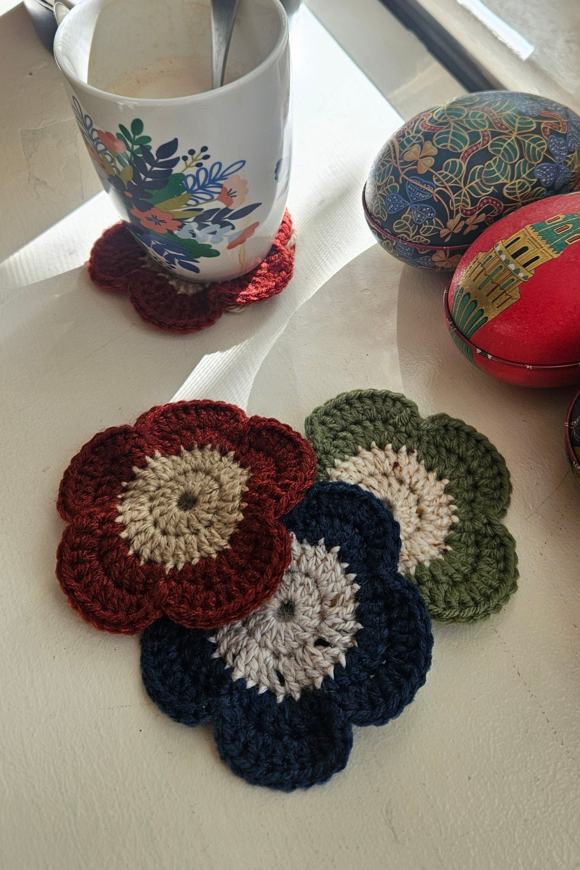 Sous-verre réalisé à la main au crochet. Idéal pour protéger vos surfaces de façon élégante pour vos boissons chaudes ou froide.
